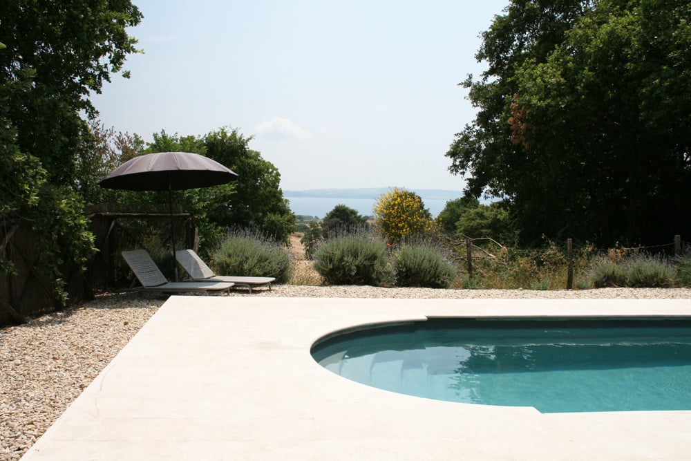 - prive zwembad met voldoende zonnebedden