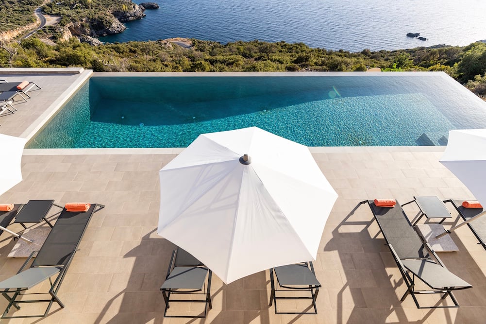 - De villa beschikt over diverse prachtige terrassen met comfortabel buitenmeubilair. Bij het mooie infinity pool (geopend van april tot oktober) staan ligbedden, parasols en er is een buitendouche.