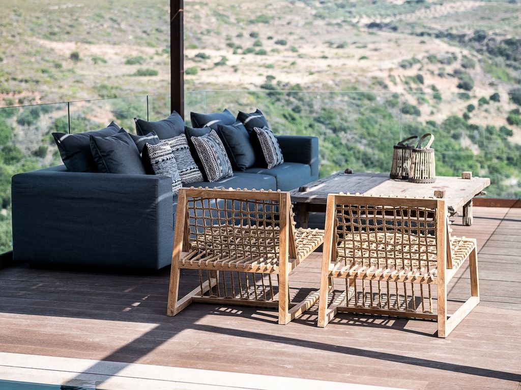 - Vanuit de living en slaapkamers stapt u op de veranda, waar u aan het einde een houten vlonder met een comfortabel loungebed vindt.
