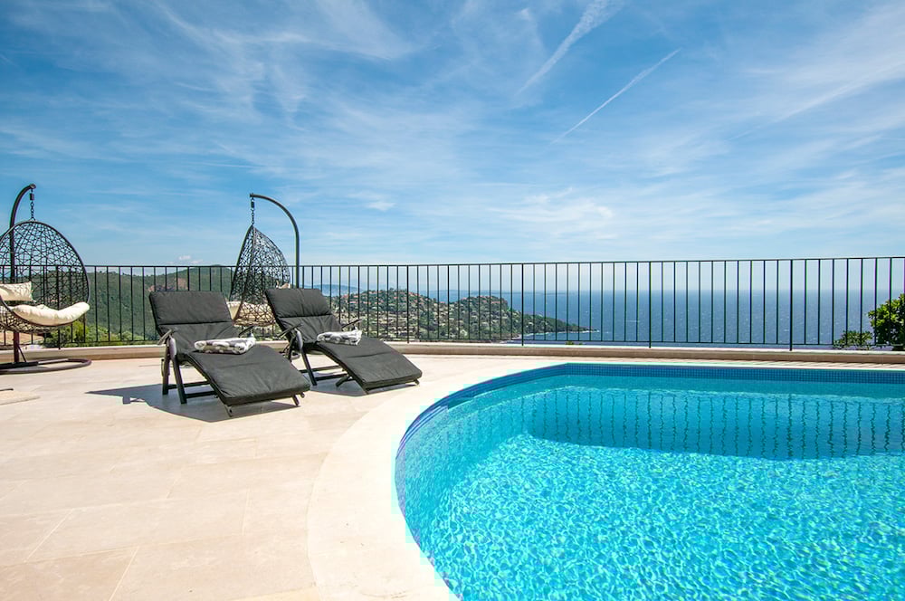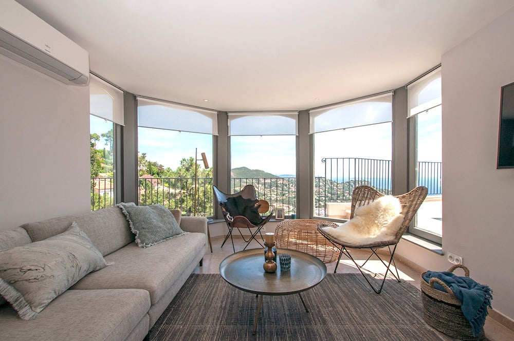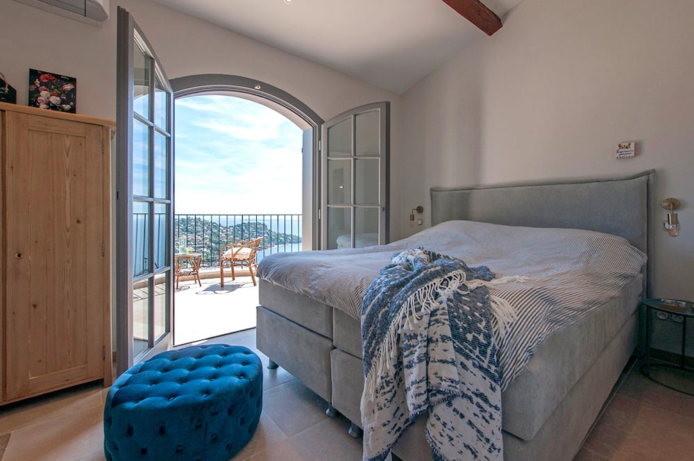 Er zijn 5 slaapkamers en 5 badkamers. Elke slaapkamer is uniek en elke verdieping heeft een buitenterras met een spectaculair uitzicht over Nice en Cannes.