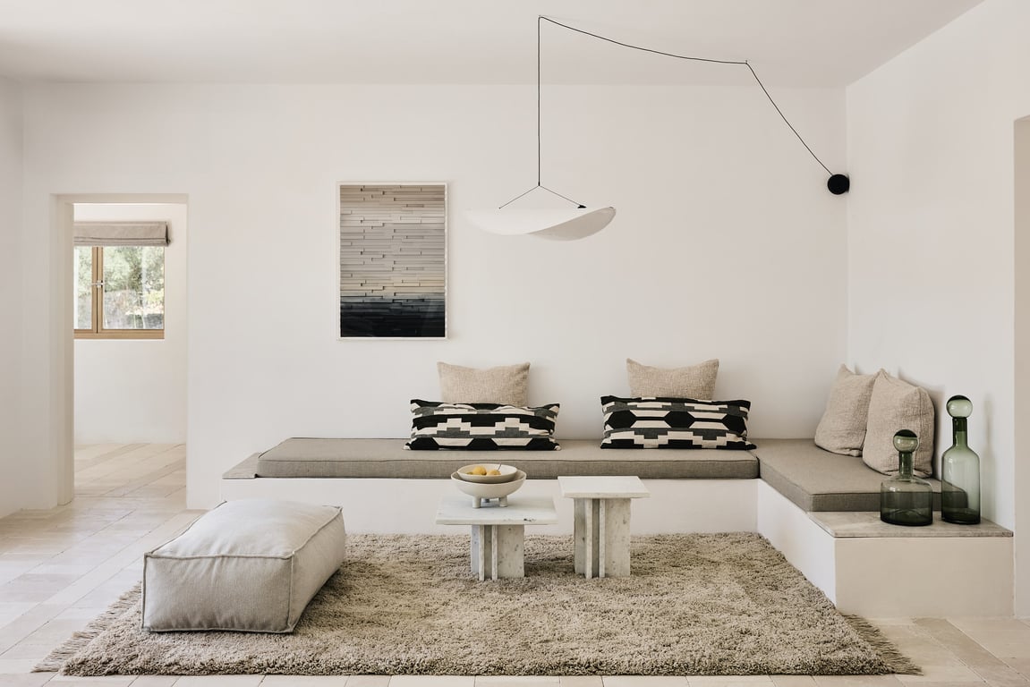 - Open-plan living met een ruime eettafel en een lounge hoek met een bench en openslaande deuren naar het terras