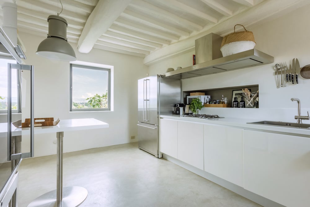 - "Varenna" keuken met Corian aanrecht, koelkast met twee deuren, oven, wijnkoelkast, voldoende werkruimte en de kelder voor optimale opslag van wijn.