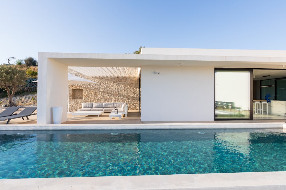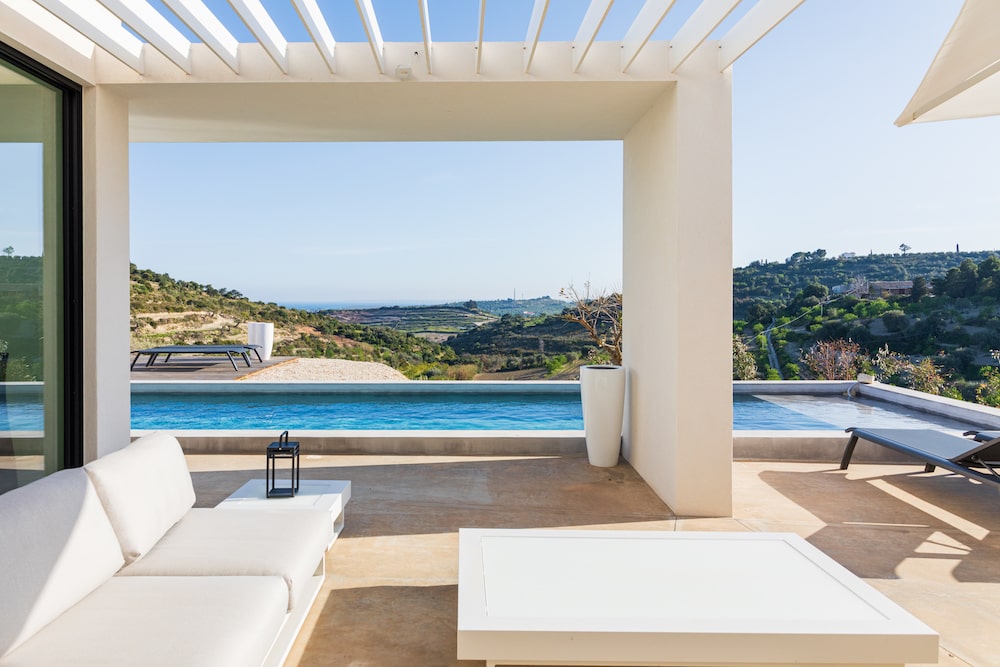 Villa Talè Kà is een nieuwgebouwde architectonische villa met 4 slaapkamers, gelegen op een 3 hectare stuk grond met een prachtig uitzicht op de zee en de olijfgaarden.
