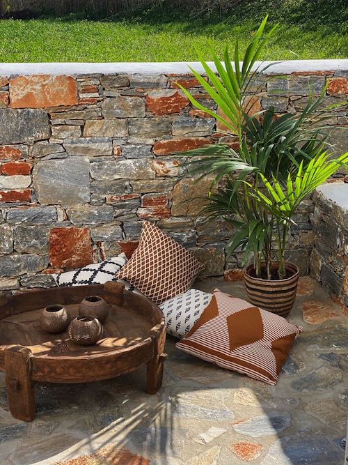 - Betegeld terras met bamboe ligbedden en comfortabele loungekussens.
