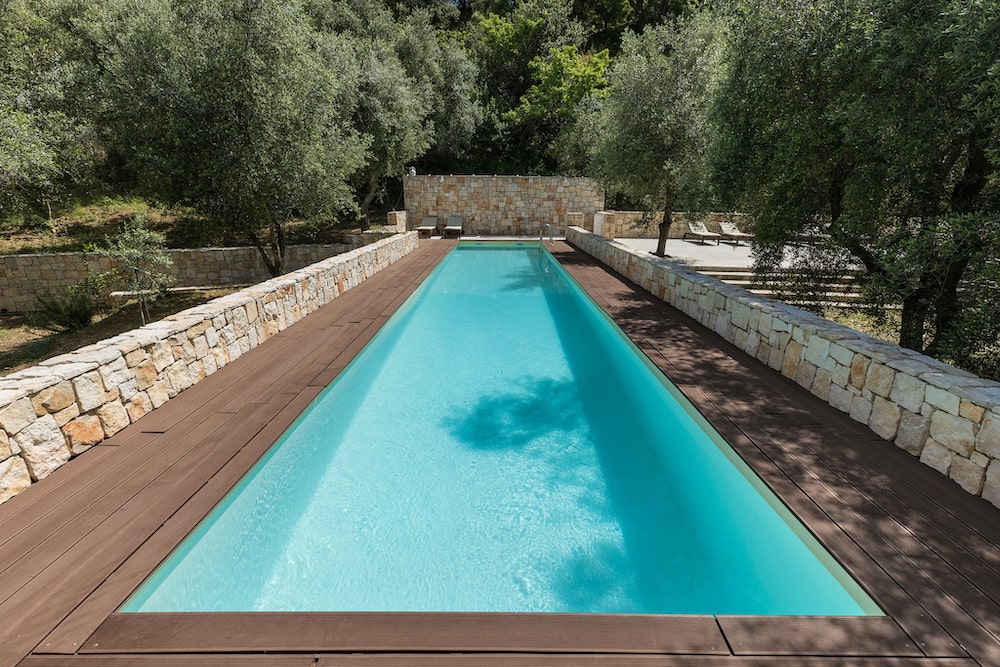 - Gezamenlijke tuinen en zwembad (15x3,5m / 1,5m diep) met zonneterras en ligstoelen. Wees erop attent dat als u in Villa Anna logeert u op de weg terug van het zwembad naar de villa u enkele (steile) trappen dient te beklimmen!