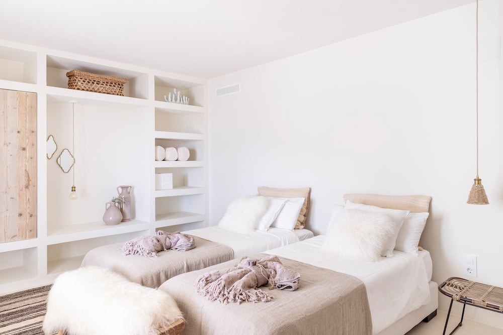 - alle slaapkamers zijn voorzien van comfortabele boxspring bedden (180 x 200 cm), waarvan er twee als enkele bedden kunnen worden opgemaakt met mooi linnen. Allemaal met een eigen ingang en apart afsluitbaar. Veel privacy en eigen zitjes. Alle kamers hebben grote ingemaakte kasten.
