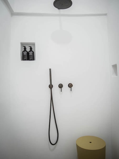 A secular olive tree offers its shade on the terrace of this suite with direct access to the olive grove. The suite is equipped with a king-size bed, a small desk, and a seating area with 2 chairs and a table. The bathroom (built in the old stables) has a large open shower, a toilet, and a double sink.