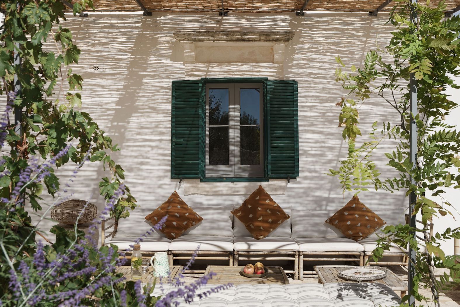 - Further on you will find the living room, with a sitting area and long dining table, both overlooking the garden and the town of Locorotondo in the distance.