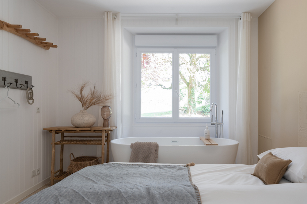 Vivre+ is surrounded by hills, charming villages and small farms and is situated on 7 hectares of land. Because the houses are elevated, there is a beautiful view of the French countryside. The authentic setting is complemented by the tasteful furnishings. Both houses have a unique design, but the same luxurious facilities, such as: a fully equipped kitchen, comfortable beds, luxurious bathrooms and air conditioning. Both houses also have bright living rooms and a lovely private terrace with inviting seating areas. The swimming pool and the adjoining terrace with the long dining table are shared. There is also a common laundry room with washing machine and ironing facilities available to all guests.