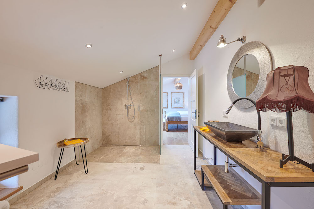 Er zijn 2 slaapkamers, beiden met een tweepersoonsbed (180x200cm) en 2 ensuite badkamers met een wastafel, toilet en inloopdouche